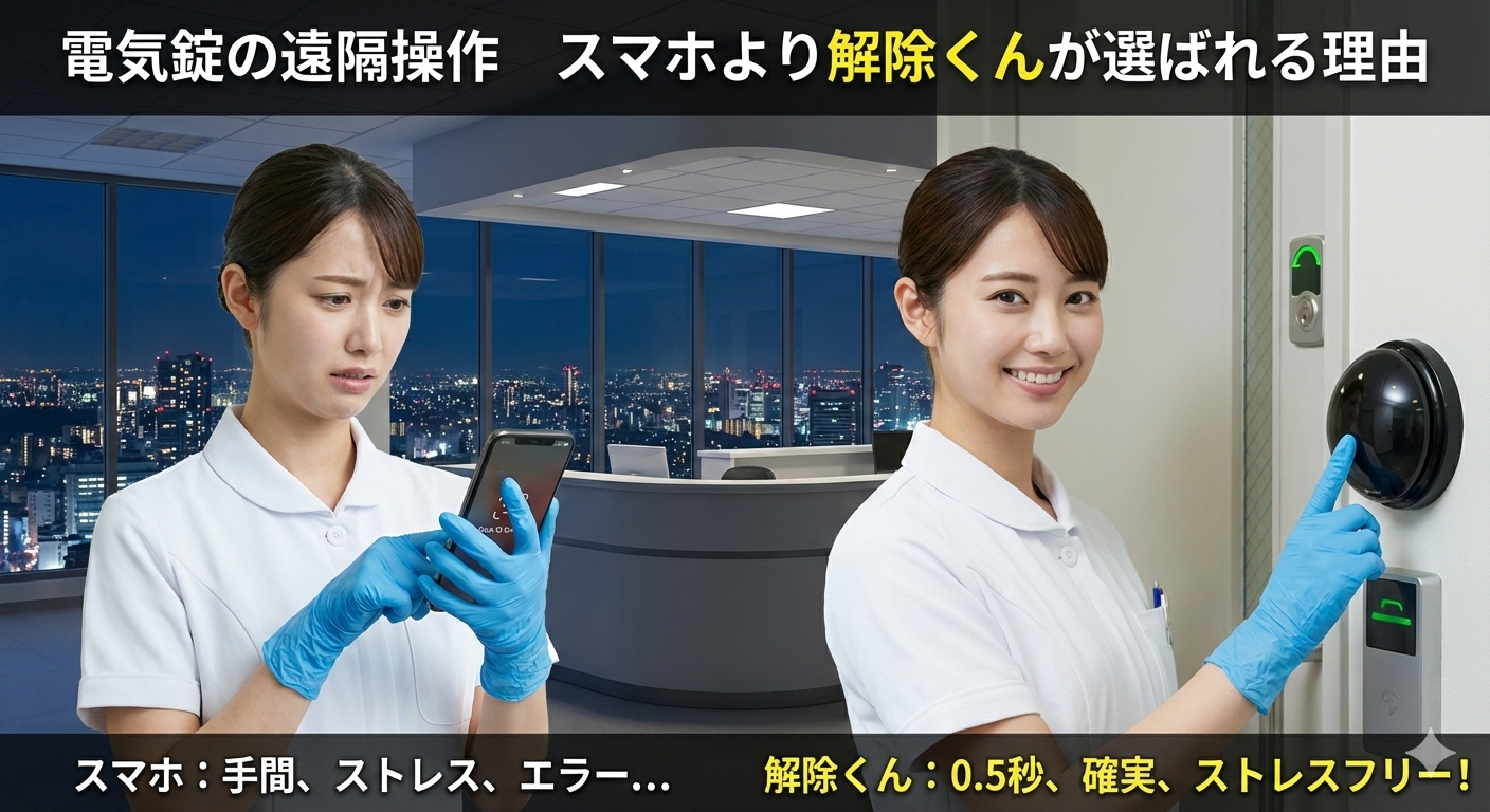 「離れた所から電気錠を操作」と聞けば、まず初めに「スマホでの操作」を思い浮かべるでしょう。