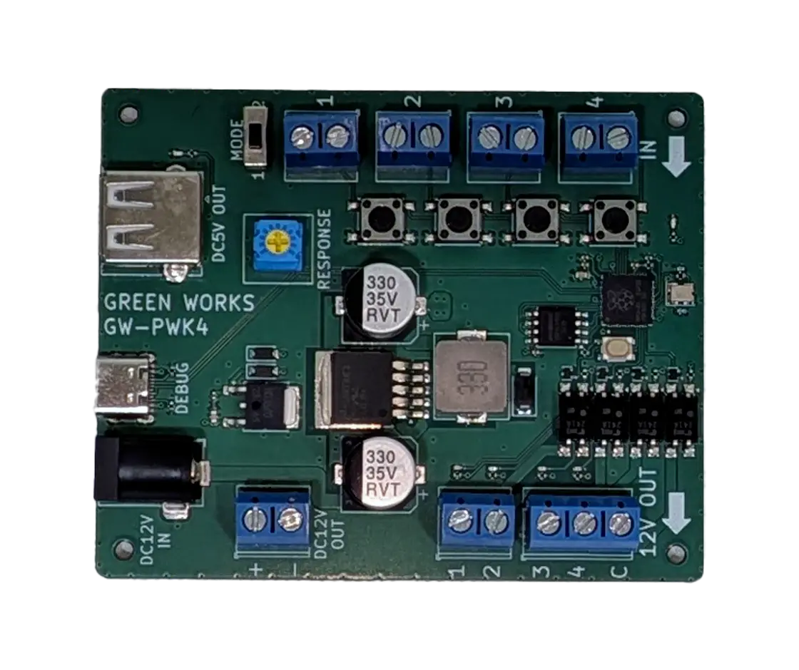 ・盤内結線をしやすいように出力端子からはDC12Vが出力されます。
